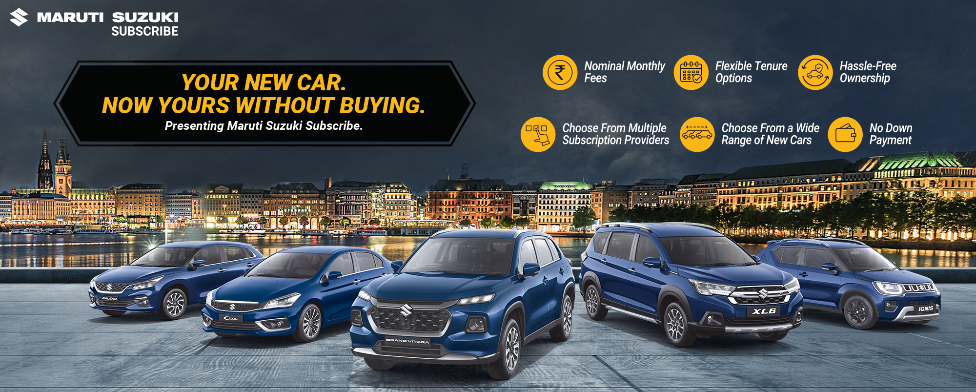 Maruti Suzuki Subscribe enables all customers to enjoy driving their preferred Maruti Suzuki cars without having to deal with all the financial responsibilities that come with owning a car.All you need to do is opt for a monthly subscription plan at a fixed monthly fee, which includes the routine maintenance and insurance costs, and choose a flexible tenure. At Sri Jayarama Motors in, , Mahabubnagar, all Hatchback, Sedan, SUV, the MUV models line-up includes Baleno, Invicto, EVitara, Jimny, Ciaz, Ignis, Fronx, Grand Vitara, XL6. Here, you will enjoy Maruti Suzuki Subscribe benefits such as: